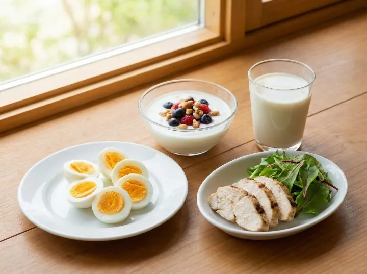 삶은 달걀, 닭가슴살, 생선, 우유, 콩 등이 대표적인 양질의 단백질 급원이죠.