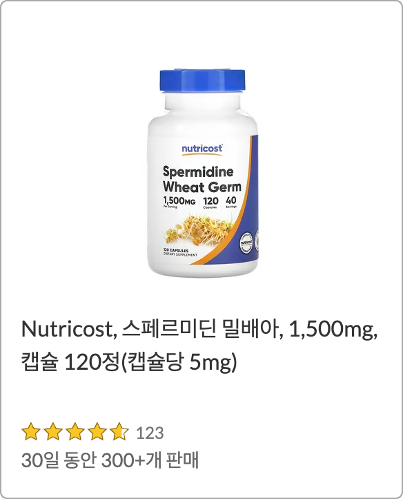 👇 좀 더 고용량의 제품을 원한다면 아래 제품도 추천드립니다. 캡슐당 5mg의 스페르미딘이 들어있는 제품이에요.